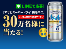 2018/02/16 apricot-manager ■ 応募サイト:アサヒビール ■ 締切日:2018年02月26日 ■ 抽選で300,000名様に 『アサヒスーパードライ 瞬冷辛口』(缶500ml×1本)を抽選で300,000名様にプレゼントいたします。 応募はこちら