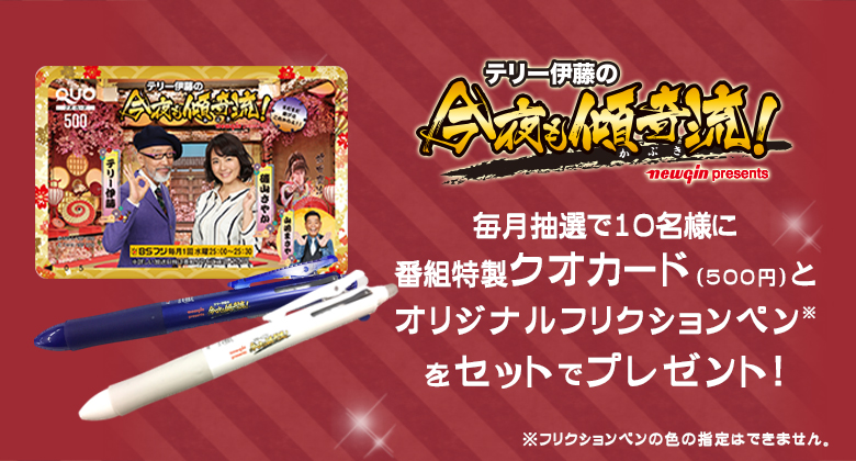 2019/04/16 apricot-manager ■ 応募サイト:BSフジ ■ 締切日:2019年04月30日 ■ 抽選で10名様 特製クオカード500円分とオリジナルフリクションペンを抽選で10名様にプレゼントいたします。 応募はこちらから