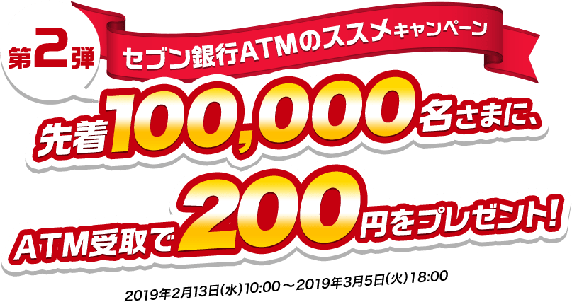 ATMで200円を先着で100,000名様にプレゼントいたします