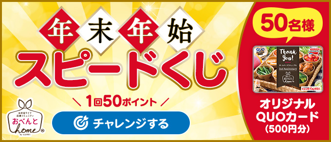 年末年始の特別スピードくじ!「おべんとポイント」50ポイントで毎日1回チャレンジでき、その場で当たりがわかります!