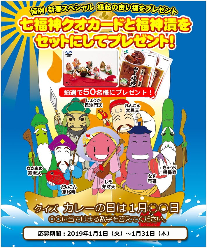 七福神クオカードと福神漬けを抽選で50名様にプレゼントいたします。