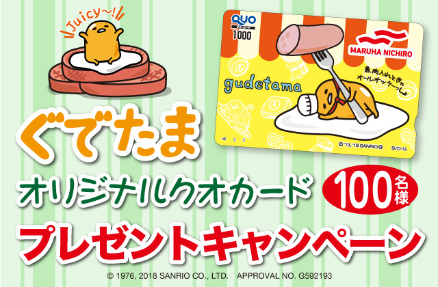 ぐでたま オリジナルクオカード 1,000円分 を抽選で100名様にプレゼントいたします。