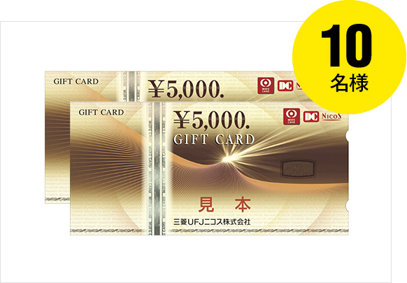 三菱UFJニコスギフトカードを抽選で5名様にプレゼントいたします。