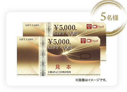 三菱UFJニコスギフトカード(1万円分)を抽選で5名様にプレゼントいたします。