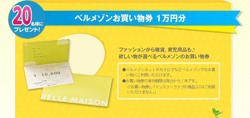 ベルメゾンお買物券 1万円分を抽選で20名様にプレゼントいたします。