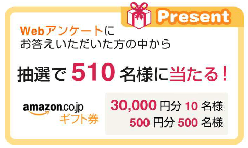 Amazonギフト券30,000円分 などを抽選で510名様にプレゼントいたします。