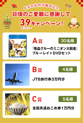 JTB旅行券3万円分などを抽選で39名様にプレゼントいたします。